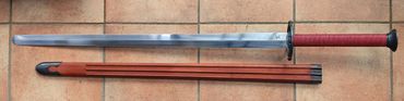 The scabbard fits very well and is high quality. Overall I am very impressed so far with this sword. Hopefully I will get to try some serious cutting with it soon. It is very nice to have a modern sword which can be pushed beyond the norm. "